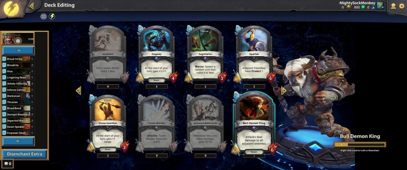 Hand of the Gods combines turn-based unit combat with collectible card deck building. Each pantheon is represented by a deck of 25 cards and a designated leader with a unique ability.