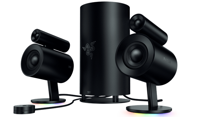 - Razer Nommo Pro: 2.1 THX-certified system with Dolby Virtual Speaker technology, Chroma lighting, and an external control pod.