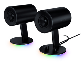 - Razer Nommo Chroma: Same as the Nommo, but with Razer Chroma lighting around the base of the speakers. Connects through a USB connector.