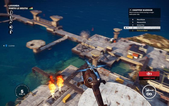 Like other open-world games, there are plenty of “challenges” (arcade sequences) you can undertake to earn bonus items and gear. Most of these take the form of timed races on air, sea, or land, or “blow the crap out of everything as fast as possible” type challenges.