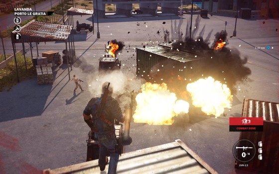 At one point (ok, actually many points) I fell more than 100 feet from an exploding helicopter and face planted into the ground—and I still got up and swaggered off without so much as a limp. (Rico was hurt, but as long as you get to cover he’ll be combat ready in no time.) Just Cause 3 definitely keeps the good times (i.e. blowing sh*t up) rolling.