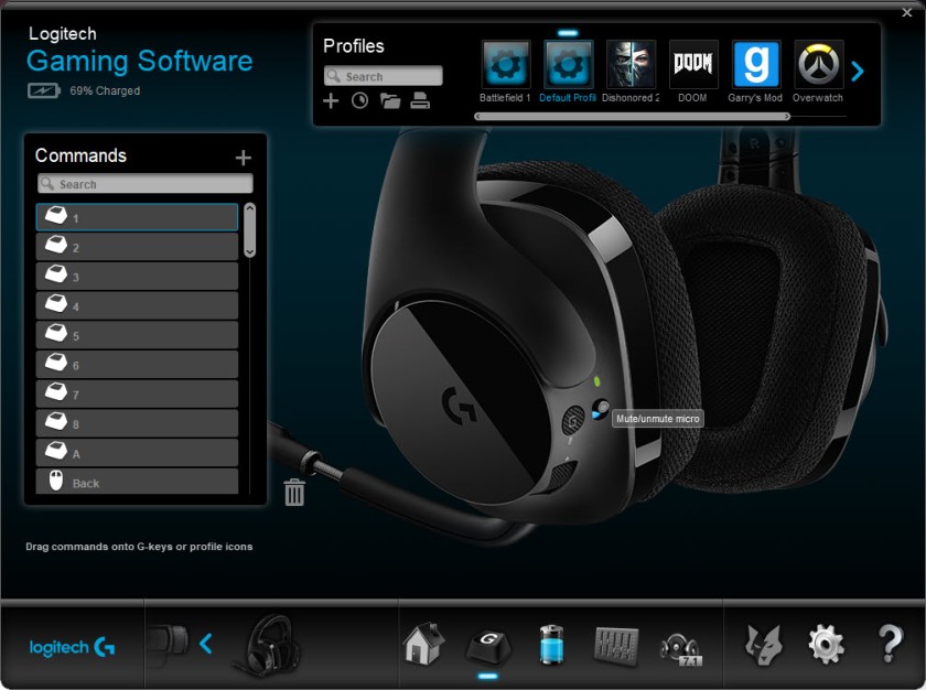 Although wholly optional, the Logitech Gaming Software gives you many additional features. With it you can customize the function of the G533 sole G-button, assigning a predefined function or custom single or multi-key macro. Many of the predefined functions are general and not particularly useful for a headset, but if you’re feeling mischievous you could assign it to ALT+F4 (close window/program) and watch the carnage.