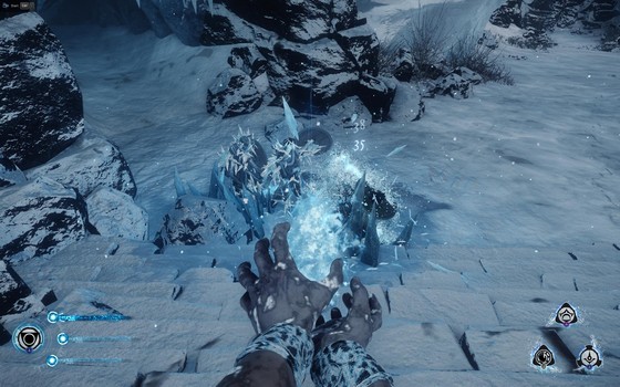 Left-click fires an attack. Left-click and hold charges a more powerful blast. Pressing and holding both mouse buttons charges an AOE attack that can rain fire from the sky, blast lightning bolts, or create traps of ice to encase enemies. Right-clicking blocks and reduces damage, and if you time it right you’ll deliver an immediate counter attack.