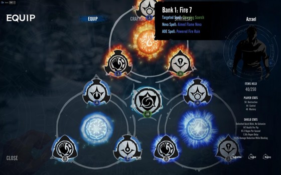 Here’s a very basic rundown of the system: Every Sigil has 3 ‘slots’ for spells, each of which governs particular aspects of the Sigil. To create a spell, you select a Sigil (fire for example), then select a pattern (bolt, ray, pool, and others), and then apply an Augmentation. Then you combine them all to create a single ‘spell’.