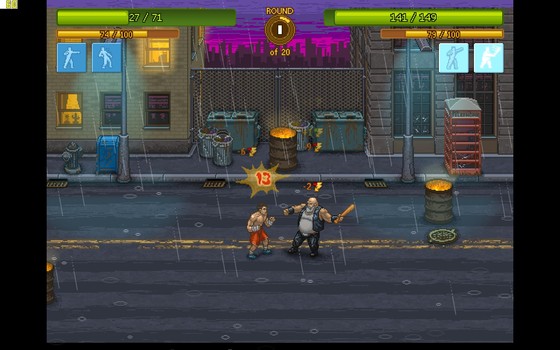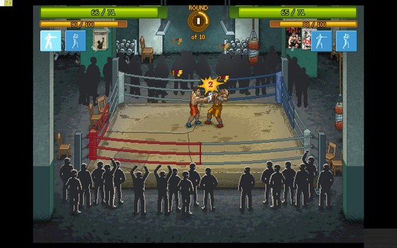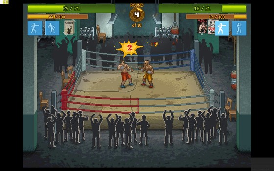 Fights play out in rounds, in which your fighter will fight using a selection of 3-5 abilities you have selected for him to use in that round. In between rounds, you can change out the abilities, choosing between strikes, defenses, and special ‘perks’ that provide various benefits. You might pick a simple block maneuver, a punch, and a kick in the early game, but after you acquire a larger arsenal of moves, you can craft different strategies for each round.