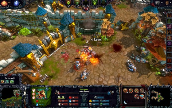 The forays into the over world are reminiscent of Warcraft III in look and feel, although they are generally less challenging from a tactical standpoint. Most excursions take the form of raids, destroying human outposts, neutral creatures, and reaching specific objectives—that is, until your army is strong enough to largely stomp across the map unchallenged and pull every last wing off of every last frickin’ fairy. You can kill fluffy woodland creatures on a whim to absolutely no effect other than the glee of feeling evil.